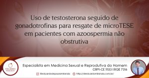 Existe uma busca por tratamentos que possam melhorar a eficácia das técnicas de captação de espermatozoides em homens com azoospermia não-obstrutiva. Como há uma deficiência na produção de espermatozoides, alguns autores advogam que tratamentos hormonais podem trazer benéficos. Um estudo recente avaliou o papel das gonadotrofinas após tratamentos supressivos com testosterona exógena em 40 pacientes com falhas prévias de microdissecção testicular (microTESE). Metade dos paciente receberam o tratamento hormonal com testosterona por 1 mês seguido por 3 meses de gonadotrofinas (FSH+LH), enquanto a outra metade não foi submetida a nenhum tratamento hormonal. Foram encontrados espermatozoides na microTESE de resgate em 10% dos pacientes com tratamento hormonal e em nenhum dos pacientes do grupo controle. Apesar de os pequenos números não terem gerado diferenças estatisticamente significativas, este estudo aponta que alguns pacientes podem SIM se beneficiar de tratamentos hormonais combinados em situações especificas.