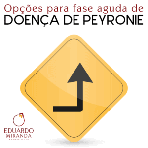 A fase inicial da doença de Peyronie é conhecida como Peyronie agudo (ou fase aguda). Esse momento, que pode durar de poucos meses a pouco mais de 1 ano, é caracterizado pela natureza dinâmica dos sintomas com mudanças da deformidade antes da estabilização. Pode ainda haver dor em cerca de 30% dos casos. A grande questão é que por ser uma fase de transição, tratamentos definitivos não são indicados. Existem estratégias a ser adotadas para impedir a progressão da doença, acelerar a estabilização, promover melhora da deformidade e combater a dor. Dentre as opções disponíveis podemos citar: medicamentos orais, tratamentos injetáveis, terapia de ondas de choque e uso de tração peniana. Medicamentos orais não devem ser utilizados, pois não têm eficácia comprovada e podem gerar efeitos colaterais. Tratamentos injetáveis com tração são as melhores opções disponíveis. Ondas de choque ajudam no controle da dor, mas em geral não mudam a deformidade. É fundamental um acompanhamento andrológico precoce para definição de uma estratégia de tratamento. Para saber mais e agendar uma consulta, CLIQUE AQUI