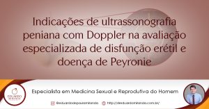 A ultrassonografia com Doppler de pênis é uma modalidade de imagem não invasiva que avalia a anatomia e fluxo vascular penianos, fornecendo informações relevantes sobre o status funcional de uma ereção. De um maneira geral, esse exame ajuda a identificar e quantificar possíveis causas orgânicas da disfunção erétil. Mais especificamente esse exame pode indicado nas seguintes situações: (i) pacientes jovens que se apresentam com o diagnostico diferencial de disfunção erétil psicogênica primária, (ii) como exame de triagem de doenças cardiovasculares ocultas, (iii) para casos de disfunção erétil não responsava ao tratamento medicamentoso, (iv) avaliação da função erétil e das deformidades da doença de Peyronie. Recentemente o uso do Doppler peniano tem evoluído substancialmente e há uma tendência de crescimento contínuo devido à sua natureza minimamente invasiva, falta de exposição à radiação e capacidade de fornecer informações que podem impactar sensivelmente a dinâmica do tratamento da disfunção erétil.