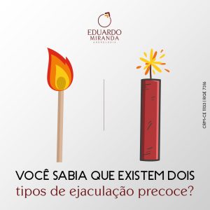 A ejaculação precoce pode ser dividida em duas categorias: a primária, aquela que acompanha o homem desde as primeiras relações sexuais; e a secundária ou adquirida, que pode ser consequência de problemas no funcionamento normal do organismo ou mesmo psicológicos.