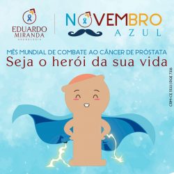 O novembro azul é uma campanha nacional de conscientização sobre a importância do câncer de próstata e da saúde do homem. Muitos problemas futuros podem ser evitados com consultas preventivas! Você é responsável por cuidar da sua saúde, cuide-se. Procure um especialista!!